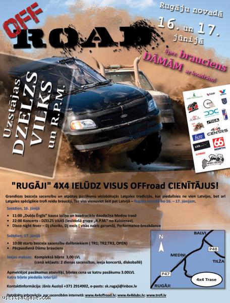 Dīvāna zemnieks ielūdz uz Rugāju gonkām 16.-17. jūnijā "Rugāji trophy 2012"! Detalizēta informācija: www.4x4offroad.lv ; www.4x4klubs.lv ; www.trofi.lv