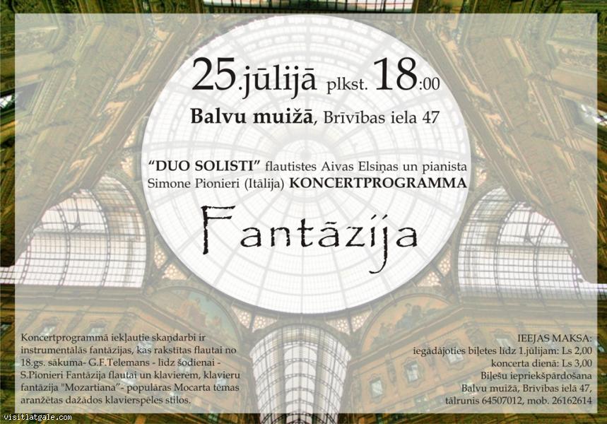 25.jūlijā plkst. 18:00 "Duo Solisti" koncertprogramma „Fantāzija”