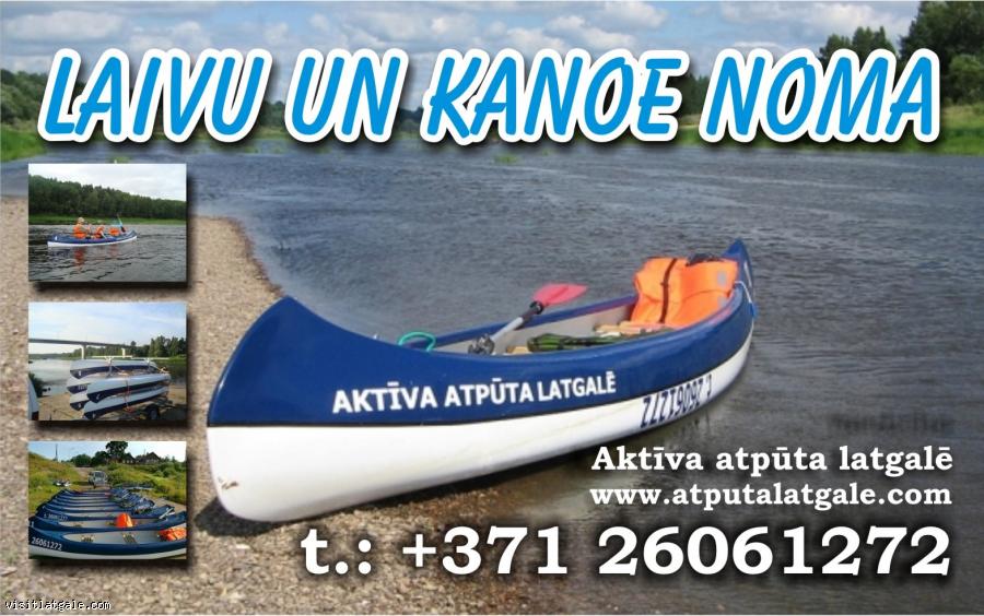Biedrība "Aktīva atpūta Latgalē" piedāvā Jums iepazīties ar Latgales pasakaino dabas ainavu, ezeru daudzveidību, upes Daugavas dabīgo tecējumu. Latgales pērles vēl aizvien pamirdz ceļiniekiem, lai apburtu tos uz mūžu. Biedrība "Aktīva atpūta Latgalē" piedāvā: • Kanoe laivu nomu (24 laivas); • Piepūšamo gumijas laivu nomu (10 laivas); • Nepieciešamā inventāra nomu (airi, sūkņi, glābšanas vestes); • Inventāra transportēšanu uz ceļojuma sākumpunktu un no ceļojuma galapunkta; • Pēc Jūsu vēlēšanās mēs piedāvājam gida pakalpojumus. Esiet sveicināti Latgalē - Zilo ezeru zemē!