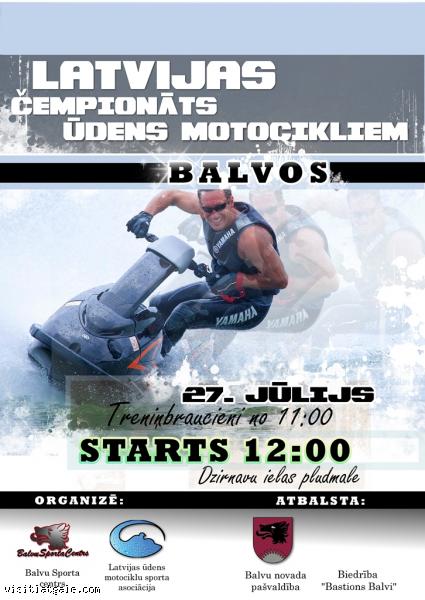 27.jūlijā sākot no plkst. 11.00 Balvu ezerā Latvijas ūdens motociklu sporta asociācija un Balvu Sporta centrs sadarbībā ar Balvu novada pašvaldību un biedrību „Bastions Balvi” organizē Latvijas čempionātu ūdens motocikliem 3.posmu kopējā ieskaitē.