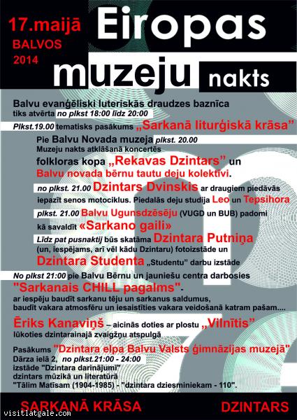 Pie Balvu novada muzeja plkst. 20.00 Muzeju nakts atklāšanā koncertēs folkloras kopa „Rekavas Dzintars” un Balvu novada bērnu tautu deju kolektīvi.