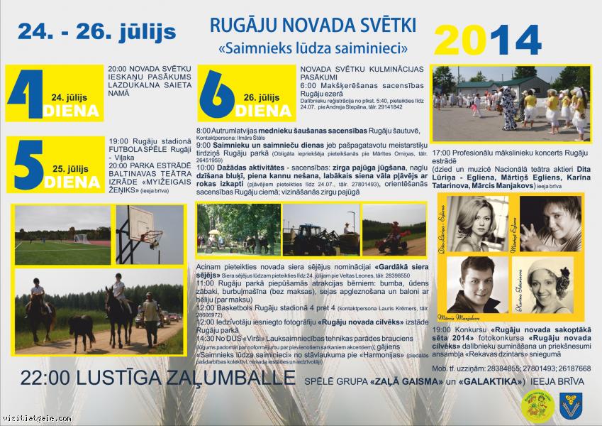 Klāt jūlija mēnesis. Tradicionāli, ik pēc 2 gadiem jūlijā, novada pašdarbnieki, sportisti, amatnieki un mājražotāji, kā arī citi aktīvisti vienojas kopīgos svētkos - šajā karstajā vasaras mēnesī svinēsim Rugāju novada svētkus 2014 „Saimnieks lūdza saiminieci”. Novada svētkos iekļauta daudzveidīga pasākumu un aktivitāšu programma, kas paredzēta gan bērniem, gan pieaugušajiem.