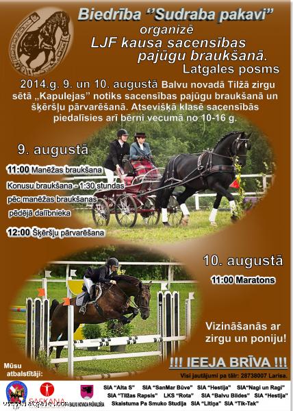 Divas dienas – 9.un 10.augustā Balvu novada Tilžā zirgu sētā „Kapulejas” notiks sacensības pajūgu braukšanā un šķēršļu pārvarēšanā. Atsevišķā klasē sacensībās piedalīsies arī bērni vecumā no 10-16 gadiem.
