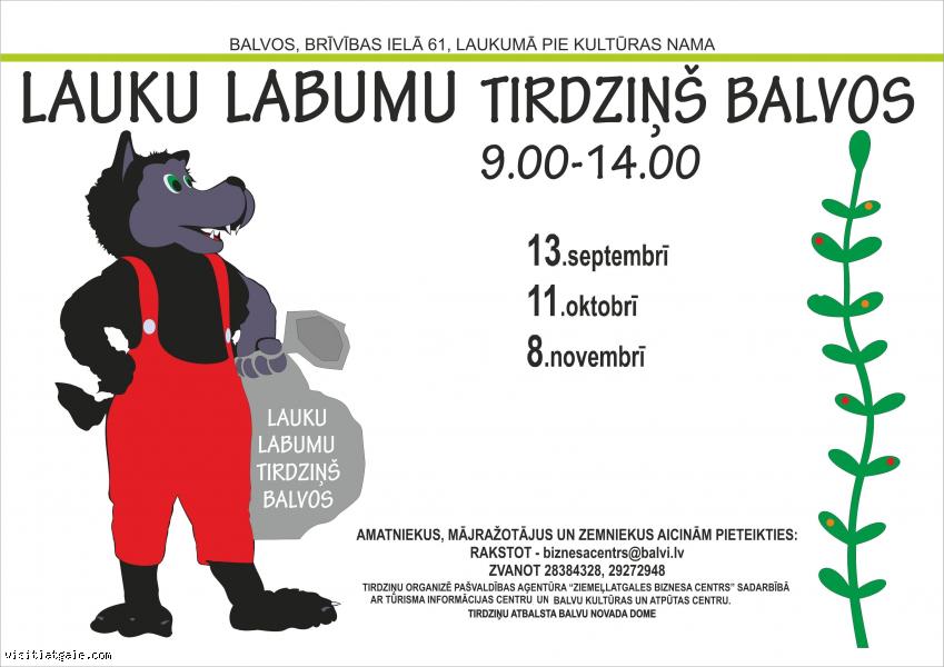 Piedalīties aicinām zemniekus, amatniekus un mājražotājus ar vietējā ražojuma produkciju! Iepriekšēja pieteikšanās dalībai tirdziņā obligāta (līdz 9. oktobrim) - Ziemeļlatgales Biznesa centrā: rakstot uz biznesacentrs@balvi.lv vai zvanot 29110896, 26461435. Īpaši gaidām Balvu un tuvāko kaimiņu novadu zemniekus, mājražotājus, amatniekus ar savu ražoto preci, sezonas augļu un dārzeņu tirgotājus!