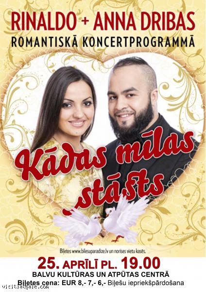 Jau šo februāri ar savu krāšņo un sirsnīgo pasaules mīlestības himnu programmu plasā koncertu tūrē dosies Latvijā visiem labi pazīstamās romu grupas ‘’RIČI’’ vadošais solists Rinaldo un ar spāņu šarmu un temperamentu apveltītā Anna Dribas.