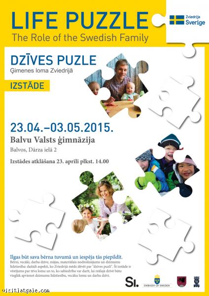 Plkst.14:00 Izstādes „Dzīves puzle” atklāšana Balvu Valsts ģimnāzijā. Zviedrijas vēstnieks Rīgā Henriks Landerholms uzstāsies ar lekciju par Zviedru ģimenes modeli, Dārza iela 2. „Dzīves puzle” ir izstāde par ģimenes modeļiem. Tā atspoguļo izaicinājumus, kas rodas apvienojot ģimenes dzīvi, karjeru, ikdienas dzīvi un ekonomiku, kā arī tieksmi pēc vienlīdzības. Kas var tikt darīts no sabiedrības un indivīdu puses?