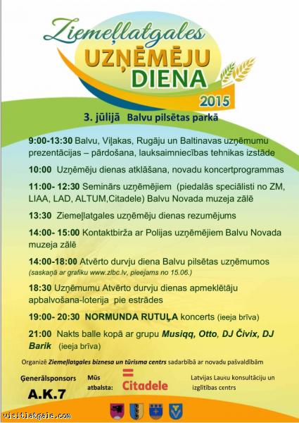 Dienas gaitā plānota gan vietējo uzņēmēju dižošanās – prezentācijas un tirgošanās Balvu pilsētas parkā un lauksaimniecības tehnikas izstāde, gan arī semināri ar Lauku atbalsta dienesta, ALTUM un Citadeles bankas speciālistu piedalīšanos. Pirmo reizi plānota arī Atvērto durvju diena Balvu pilsētas uzņēmumos.