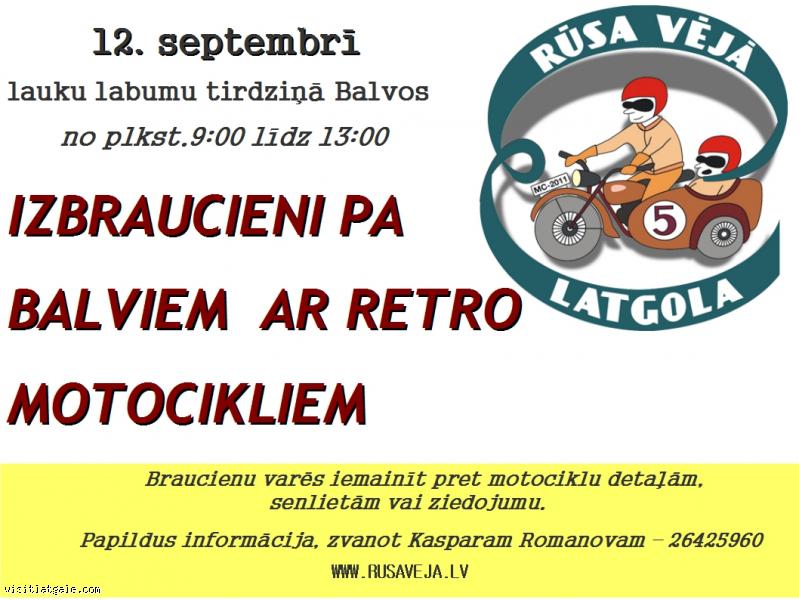 12. septembrī Balvos, laukumā pie Balvu Kultūras un atpūtas centra notiks ikmēneša tradicionālais lauku labumu tirdziņš. Aicinām apmeklēt tirdziņu, lai iegādātos dažādus lauku labumus, amatniecības izstrādājumus, sezonas ogas un dārzeņus no vietējiem zemniekiem, mājražotājiem un amatu meistariem! Kultūras programmu šoreiz piedāvās Balvu novada Tilžas pagasta kultūras kolektīvi, savukārt biedrība “Rūsa vējā” aicinās doties izbraucienā pa Balvu pilsētu ar retro motocikliem.