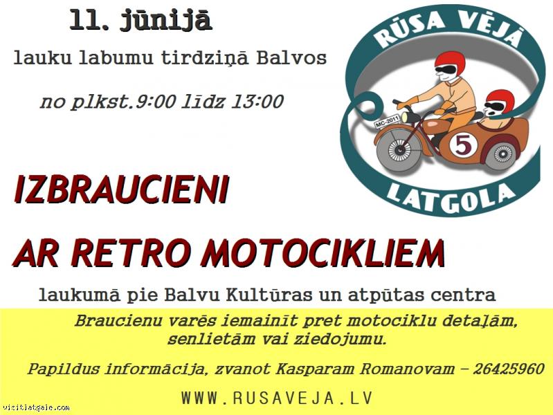 11. jūnijā Balvos, laukumā pie Balvu Kultūras un atpūtas centra otiks tradicionālais lauku labumu tirdziņš, kura ietvaros katru mēnesi no maija līdz pat oktobrim aicinām ikvienu iepazīt dažādu jomu Ziemeļlatgales amatu meistarus un tradīciju pratējus. Šajā tirdziņā aicinām uz koka rotaļlietu izgatavošanas meistardarbnīcu, ko vadīs Ēriks Kanaviņš. Savukārt Retro moto klubs “Rūsa vējā” tirdziņa apmeklētājiem piedāvās vizināšanos retro motociklā pa Balvu pilsētas ielām.