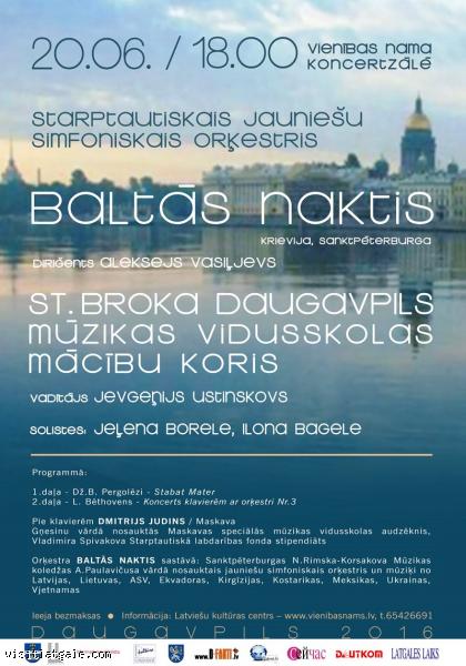 Sanktpēterburgas starptautiskais jauniešu simfoniskais orķestris „Baltās naktis” (diriģents Aleksejs Vasiļjevs) un Staņislava Broka Daugavpils Mūzikas vidusskolas mācību koris (vadītājs Jevgeņijs Ustinskovs) 20.jūnijā sniegs klasiskās mūzikas koncertu Daugavpilī.