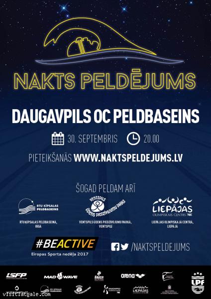 Latvijas Peldēšanas federācija sadarbībā ar Latvijas Sporta federāciju padomi un Daugavpils Olimpisko centru aicina visus daugavpiliešus un pilsētas viesus uz Latvijā vērienīgāko aktīvā dzīves veida pasākumu peldbaseinā - Nakts Peldējumu.