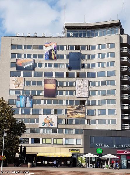 – Viesnīcas ēka, uz kuras izvietota āra ekspozīcija.