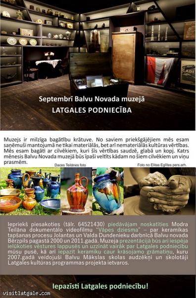 Papildus informācija un pieteikšanās programmai - Balvu novada muzejā, tel. 64521430,28352770