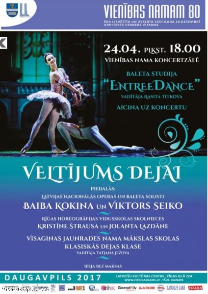 Tuvojoties Starptautiskajai dejas dienai, baleta studija “EntreeDance” (mākslinieciskā vadītāja Rasita Titkova) aicina uz koncertu “Veltījums dejai”, kurš norisināsies 24. aprīlī plkst 18.00 Vienības nama koncertzālē (Rīgas ielā 22a).