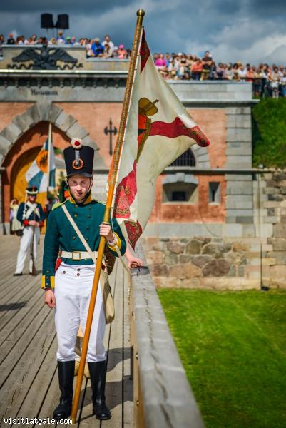 Plkst. 12.00 signāllielgabala šāviens no vaļņa (pie Nikolaja vārtiem) vēstīs par pusdienlaika iestāšanos cietoksnī. Uzreiz pēc tam, pūtēju orķestru pavadībā, sāksies rekonstrukcijas klubu parāde, kas virzīsies no Aleksandra vārtiem pa Imperatora ielu līdz Marka Rotko mākslas centra pagalmam (skatuvei). Tai sekos arī rekonstrukcijas klubu paraugdemonstrējumi un svinīgas uzrunas.