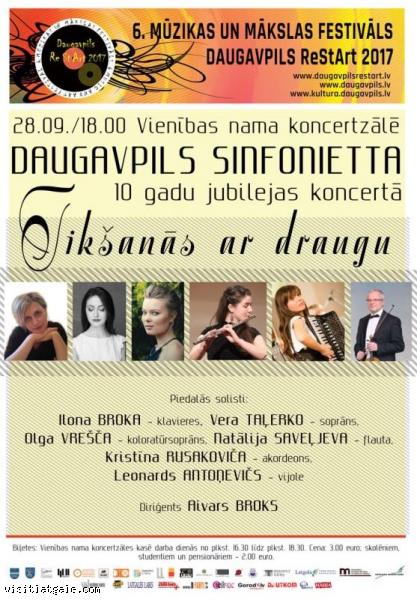 Šī gada 28.septembrī plkst. 18:00 Vienības nama koncertzālē (Rīgas iela 22a) notiks orķestra Daugavpils Sinfonietta 10 gadu jubilejas koncerts „Tikšanās ar draugu”.