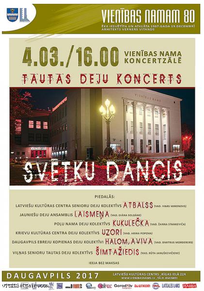 4. martā plkst. 16.00 Vienības nama koncertzālē (Rīgas ielā 22a) būs skatāms tautas deju koncerts ar Daugavpils un Viļņas kolektīvu piedalīšanos.