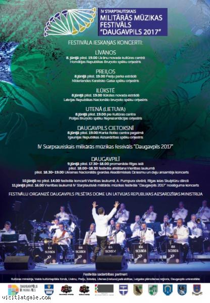 No 8. līdz 11.jūnijam, Daugavpilī un reģionā norisināsies IV Starptautiskais militārās mūzikas festivāls "Daugavpils 2017", kurā piedalīsies militārie orķestri no Horvātijas, Nīderlandes, Latvijas, Polijas, Igaunijas un Ukrainas. Tik plaša militāro orķestru ārstāvniecība Daugavpilī būs pirmo reizi.