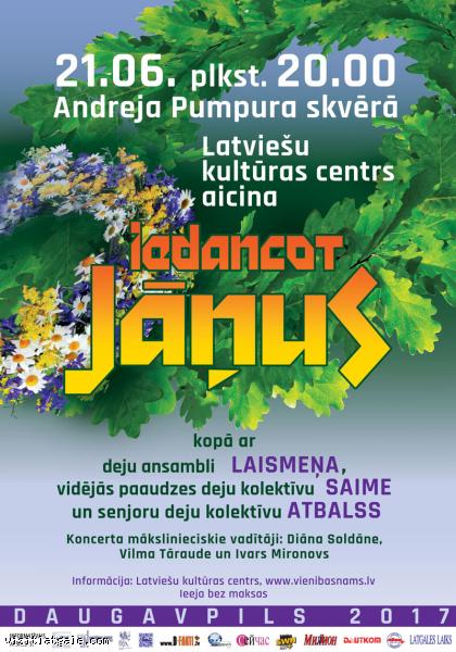 Daugavpilī, 21. jūnijā, plkst. 20.00 Latviešu kultūras centrs aicina sagaidīt Vasaras saulgriežus kopā ar deju ansambli “Laismeņa”, vidējās paaudzes deju kolektīvu “Saime” un senjoru deju kolektīvu “Atbalss”, izdejojot jestras dejas.